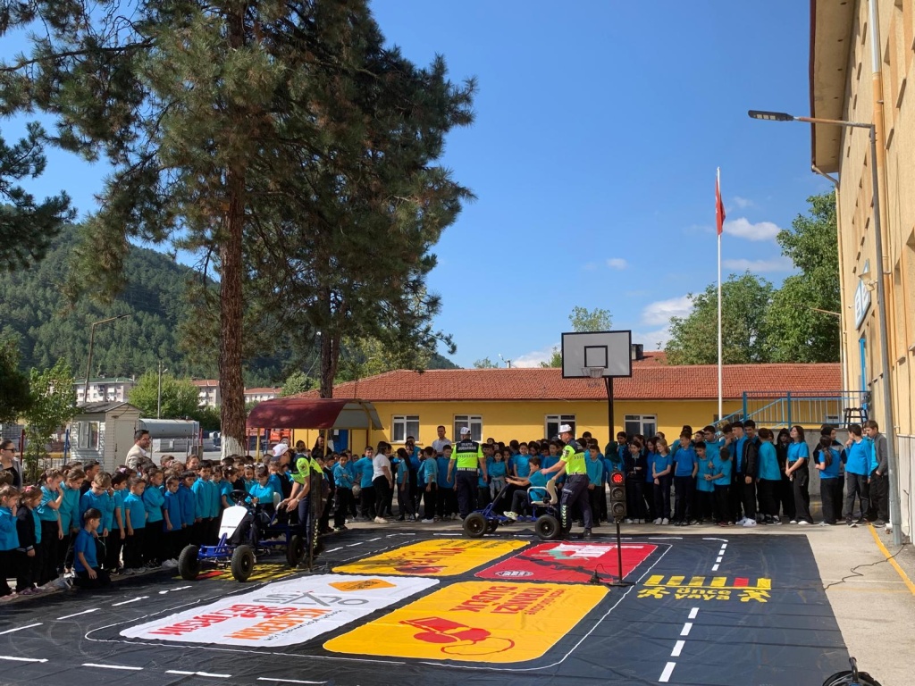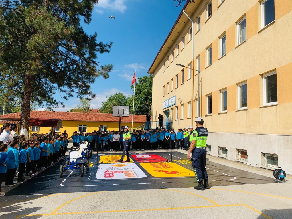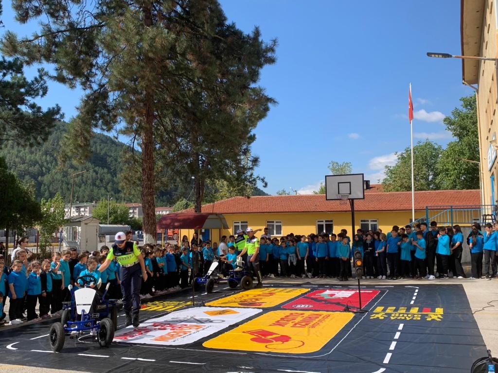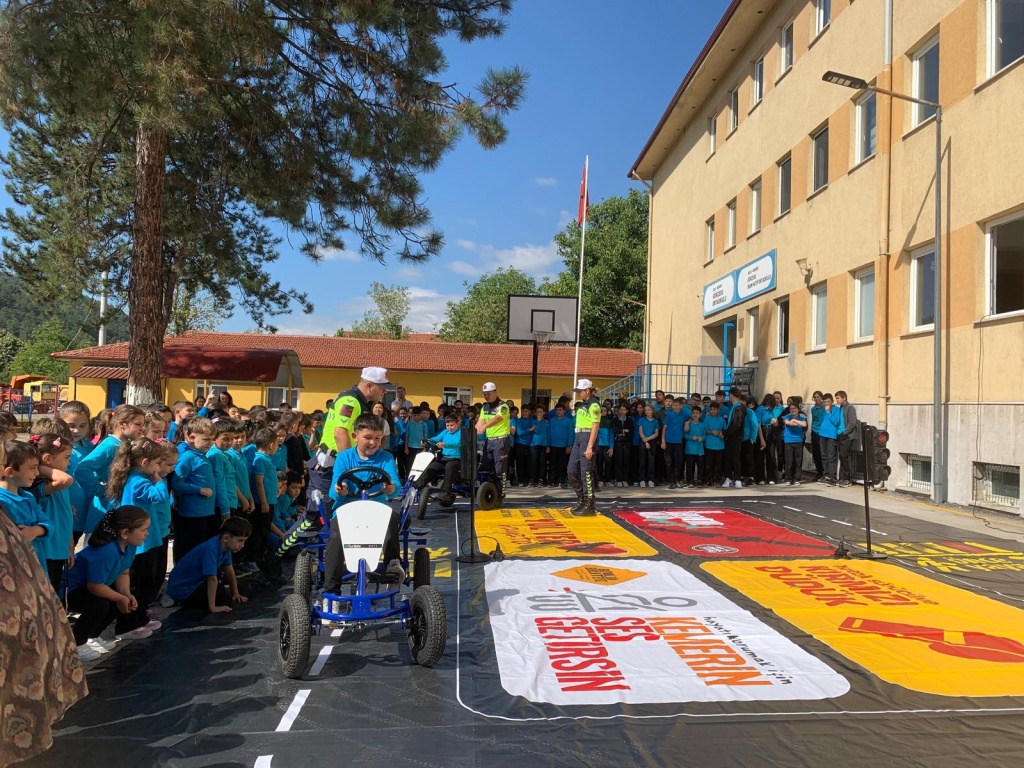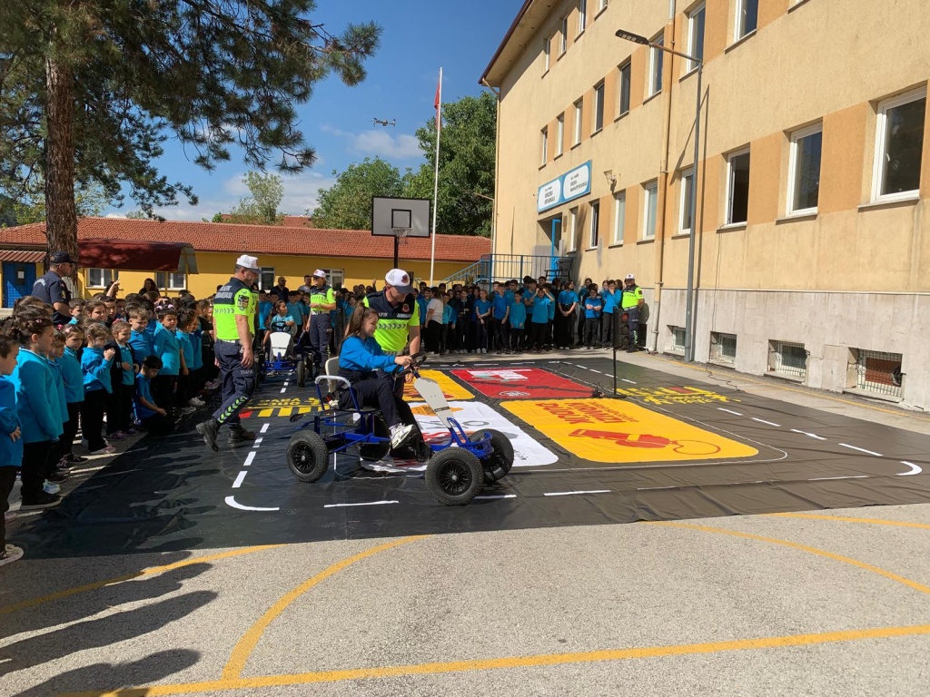 Ekipler tarafından yaya geçitleri, trafik kuralları ve trafik ışıkları hakkında yapılan bilgilendirmeler sonrasında mobil trafik aracı ile uygulamalı bir eğitim süreci gerçekleştirildi.